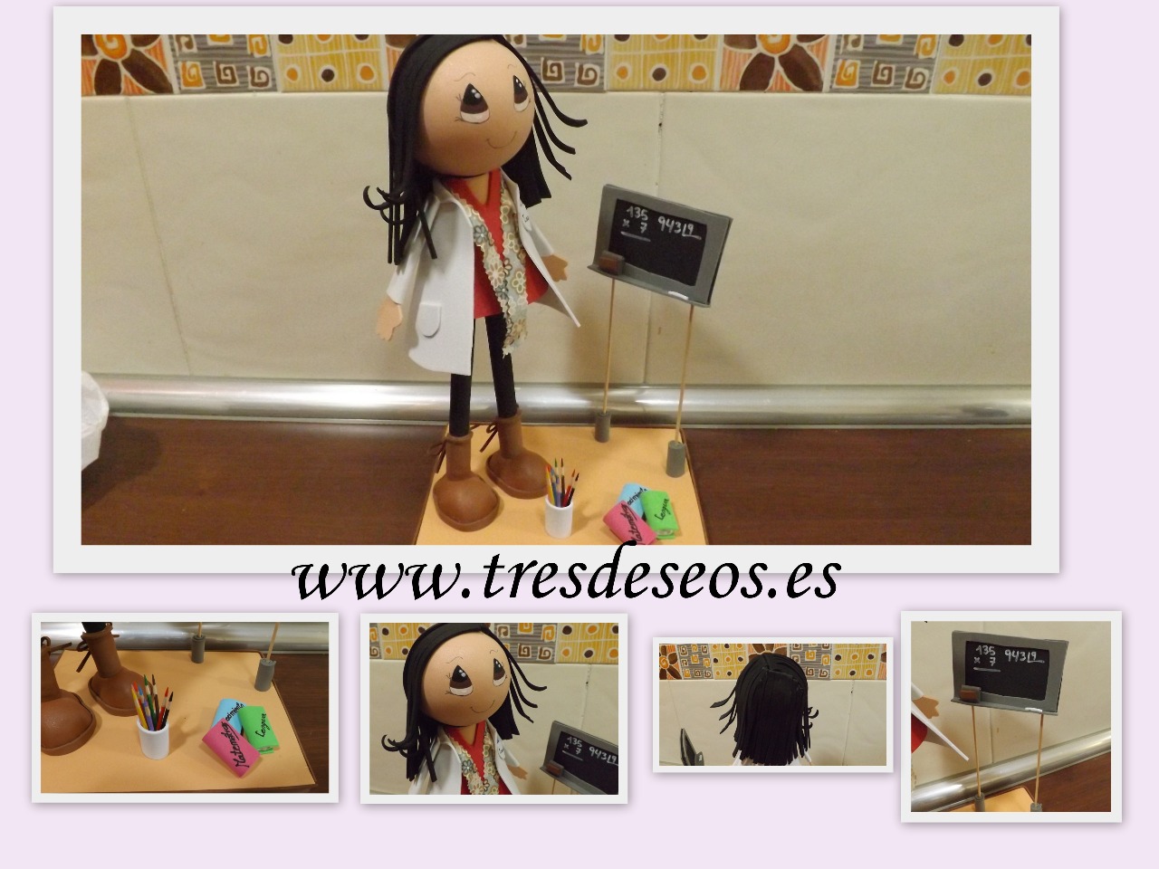 y a la profesora, preparando sus clases, con sus libros y todo el material necesario...